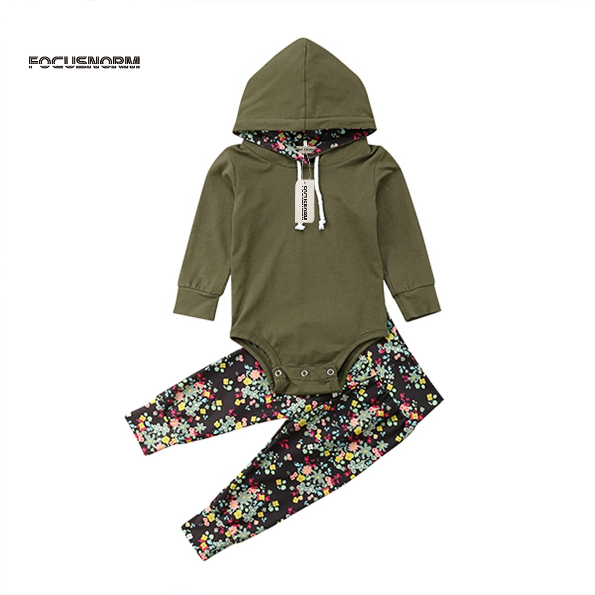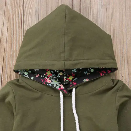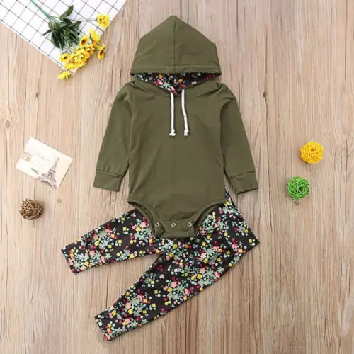2Pcs Brand New Kids Baby Girl Boy Hooded Tops Pocket Romper Sweatshirt+Floral Pants Hoodie Floral O