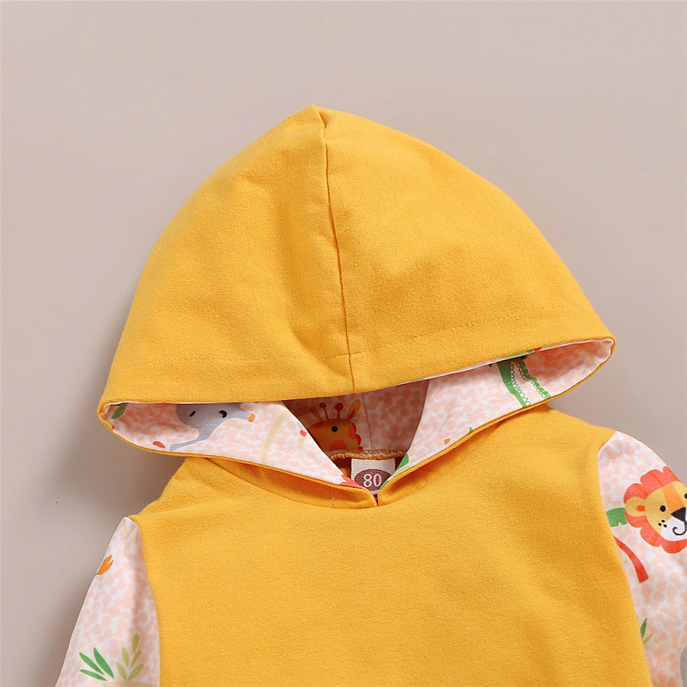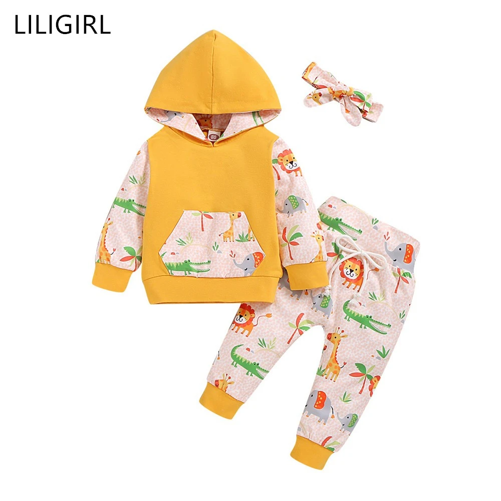 2020 Infant Baby Girl Boy Clothes Sets Newborn Kids Long Sleeve Hooded Sweatshirts+Flower Print Pan