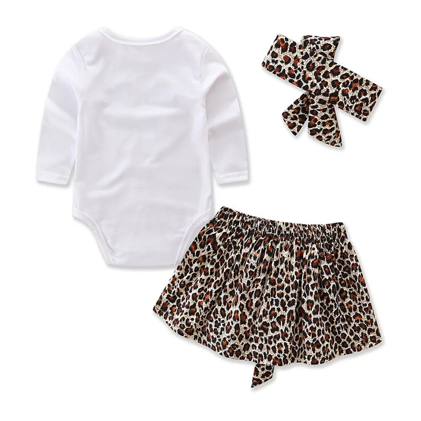2017 Christmas gift baby girls long sleeve leopard love bodysuit skirts headwear 3pcs set princess